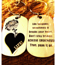 Engraving Says: Life! happens; sometimes it breaks your heart. Don't stay broken; ACHIEVE GREATNESS! Then, pass it on.
